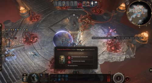 Тут все довольно скучно, так как маг просто начнет угрожать всем взрывом шара и уничтожением Врат Балдура, прикрываясь всеобщим благом. Убеждать его не делать этого не имеет как такового смысла, так как на самом деле вы будете разговаривать с Орин.