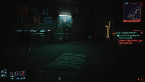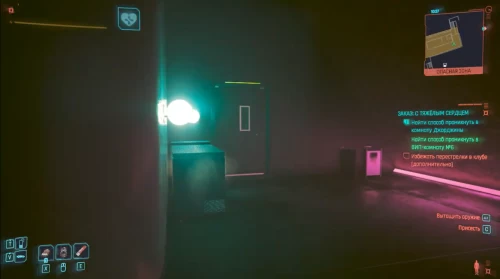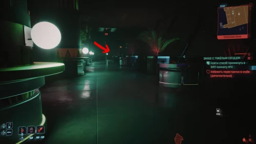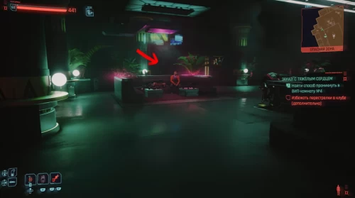 Теперь вы сможете зайти в саму ВИП-зону. Поднимитесь на второй этаж и, избегая открытого конфликта, пройдите до конца коридора в комнату за диванчиком.