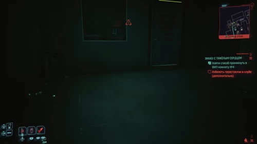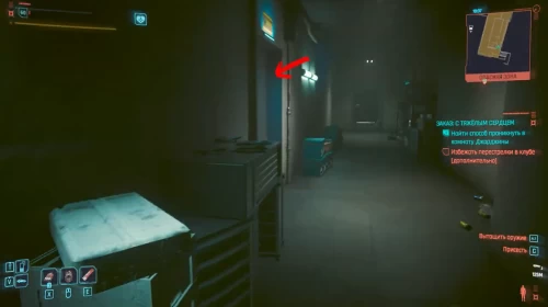 Тем не менее в комнату можно попасть и другим способом. Справа есть технический коридор с запасной дверью. Взломайте ее и зайдите в комнату.