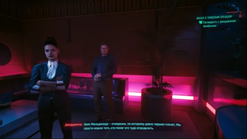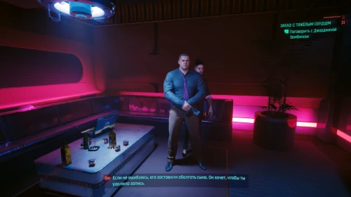 Также Майкл скажет, что она часто бывает в клубе «Тяжелые сердца». По пути туда Ви получит сообщение от мистера Хэндса. Ему дорог этот клуб, поскольку он проводит там важные встречи, поэтому Хэндс попросит Ви не устраивать внутри никаких перестрелок.