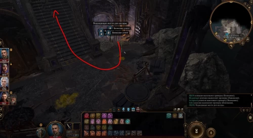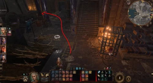 Избавившись от лишних глаз, подойдите к запертой двойной двери и взломайте ее (Ловкость рук 14). Кстати, именно тут вы можете заранее незаметно разобраться с Всевидящим оком, которое повсюду следует за вами (этот шаг поможет вам в будущем). Войдите в новую комнату и подойдите к северной стене для прохождения проверки на Внимание, после чего на стене появится кнопка (X: -584, Y: 416). Воспользуйтесь ею для открытия скрытого прохода.