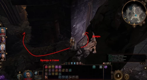 Поднимитесь еще выше к узорной двери, которую необходимо взломать (Ловкость рук 10), или пройдите налево от нее, прыгните на выступ и отыщите брешь в западной стене. Войдя внутрь, бегите в дальнюю часть помещения, где вас будет ждать гномиха.