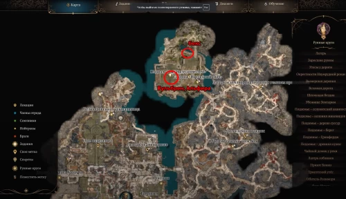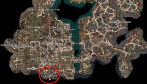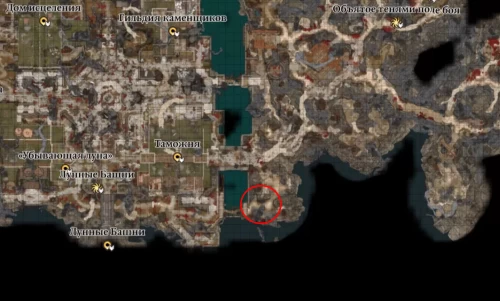 Первым делом вам нужно будет добраться до Лунных башен, находящихся в юго-западной части карты. На скриншоте ниже показано их расположение. Существует несколько способов побороть темное проклятие и пройти к нужному месту.