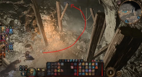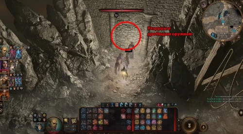 Примечание: Если у вас имеется только один персонаж, способный орудовать дробящим оружием, то можете передать молот Вульбрену и оставить возле него одного из спутников. Скажите ему, что пора бежать, а затем быстренько разломайте стену у тифлингов.