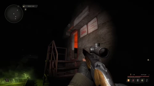 Пройдите до конца тоннеля, пока не увидите салатовые химические аномалии. Справа напротив находится диспетчерская – войдите в нее.