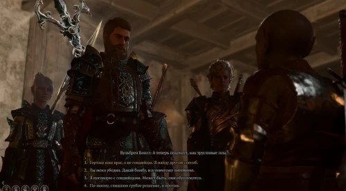 - Если вы отыгрываете роль добряка и Рут жив, то выберите ответ «Может быть, гномам Железной Руки нужен новый предводитель? Что скажешь, Барк?», пройдя проверку на Убеждение (15). В этом случае Барк сможет заключить союз между гномами и гондийцами и обе группы станут вашими союзниками в последней битве. Вульбрен же уйдет, осыпав всех проклятиями (в будущем мы его не встречали).