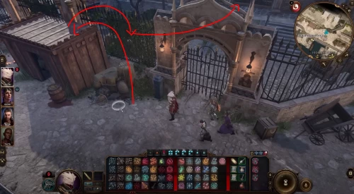 - Можно также просто пробить решетку дробящим оружием и войти внутрь. Если вас заметит стальной стражник, то вы можете убедить его, что вам разрешено здесь находиться, пройдя проверку на Обман, Запугивание или Убеждение (класс сложности 22). В результате вы сможете спокойно перемещаться по территории вокруг фабрики – советуем пройти к платформе (X: -276, Y: -175) на южной стороне здания и взаимодействовать с рычагом, чтобы открыть вход в литейную.