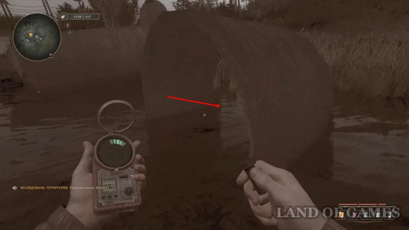 Отправляйтесь в локацию «Радиоактивное болото», однако учтите, что это очень опасное место и здесь следует быть очень осторожным.