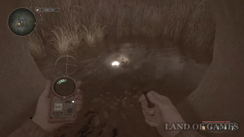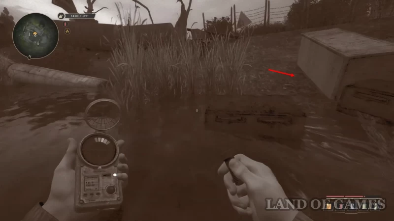 Далее бегите на южную сторону болота. За железным ящиком, который расположен на берегу, сможете подобрать третий предмет.
