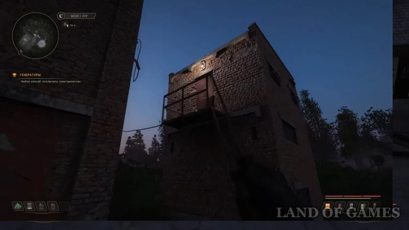 Подстанция находится рядом с забором. Заберитесь по лестнице наверх, зайдите внутрь и опустите рычаг вниз – он расположен прямо у входа.