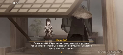 Юань Дай придется превратиться в журавля, чтобы сохранить сознание. После кат-сцены, где Путешественник увидит во сне своего близнеца, Сянь Юнь примет Шу Юй в ученицы и решит перебраться в город. Ловца сновидений она подарит вам на память.