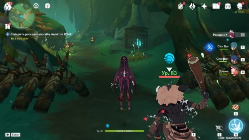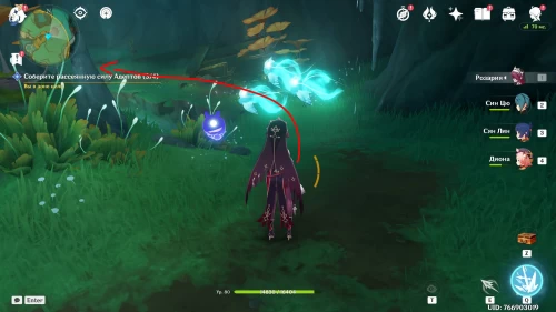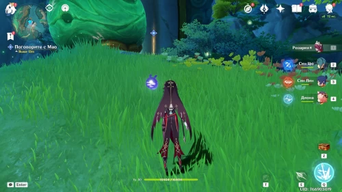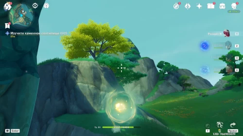 Пройдите немного на север к туннелю, и вы увидите здесь группу хиличурлов, охраняющую фею в клетке. Разберитесь со всеми врагами (появится второй отряд врагов во главе с хиличурлом-изгоем), а затем освободите фею.