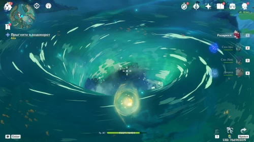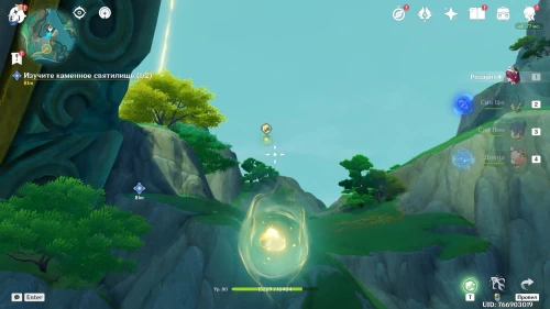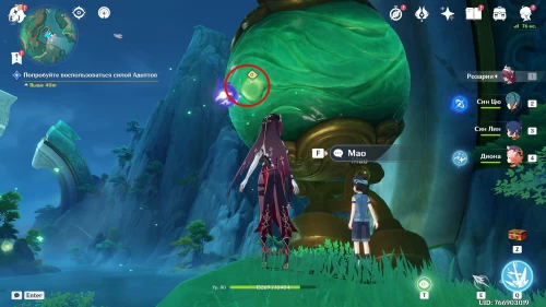 Спрыгните вниз к копошащимся внизу хиличурлам и разберитесь с ними. Затем осмотрите белый огонек рядом с ними, – баночка внезапно станет больше.