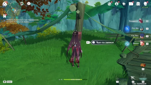 После беседы с Сян Цзюнь бегите на юг по горной дороге в сторону выделенной области. Придя в нужное место, изучите сумку с чьими-то записями, которая висит на палатке. Вы узнаете, что дедушка малышки нашел тропку, ведущую прямиком в гору Сюаньлянь.