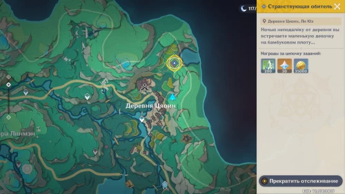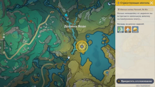 Первым делом вам нужно будет завершить мировой квест под названием «Трехкратные ожидания». Затем отправляйтесь на берег Склона Чайного дерева, находящегося к юго-западу от деревни Цяоин. На картинках ниже показано нужное место.