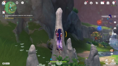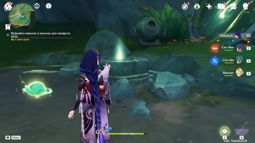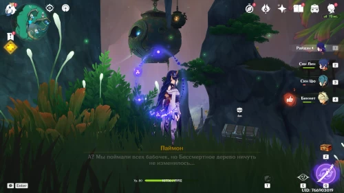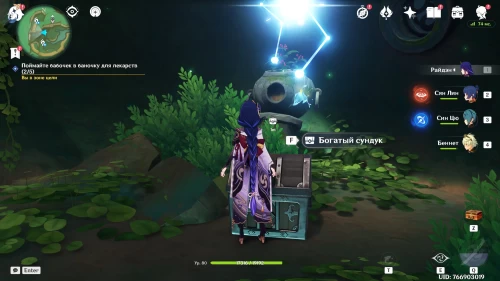 Разберитесь с группой хиличурлов, а затем приблизьтесь к появившейся оранжевой бабочке. Следуйте за ней, пока не появится богатый сундук, и откройте его. Последнее насекомое залетит в баночку.
