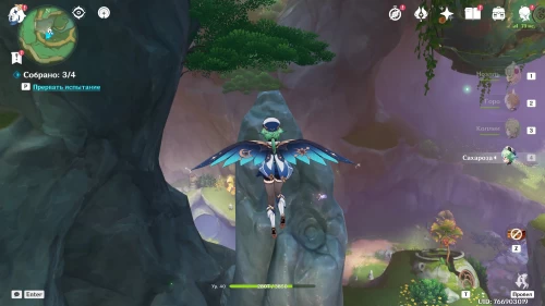 От своего текущего местоположения бегите на север и спрыгните с выступа к водопаду. Там вы обнаружите красную метку испытания – взаимодействуйте с ней для старта челленджа.