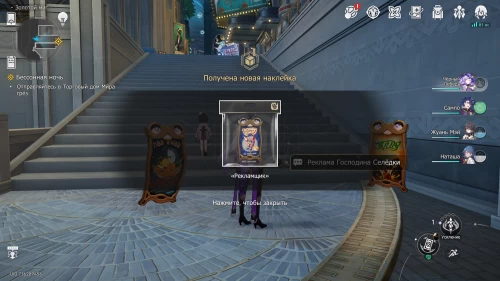 Закончив просмотр, вы добудете сразу две наклейки: Пузырь грез Безымянных (возможно, выдается только после покупки воспоминания) и Торговый дом Мира грез. Плюс, вы можете приобрести Пузырь памяти Безымянного, потратив 100 тысяч кредитов.