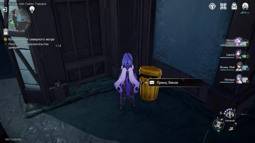 Поверните направо и сделайте несколько шагов, чтобы увидеть в углу здания Принца баков – взаимодействуйте с ним. Можете выбрать любой вариант ответа, так как вы в любом случае получите доказательство.