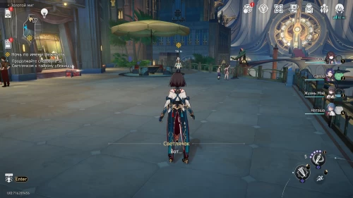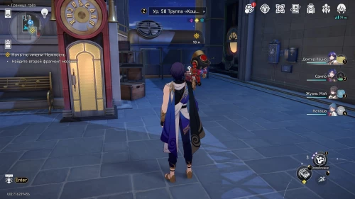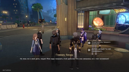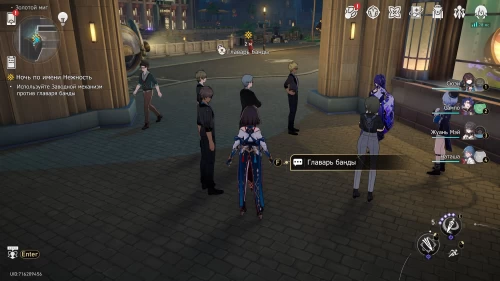 Начните бежать за девушкой, пока не столкнетесь с Часиком. Поговорите с ним, а потом начните следовать уже за мультяшным персонажем. Вы подойдете к группе людей, окруживших Мишу и Ахерон.