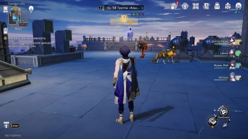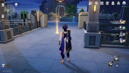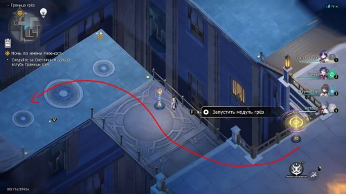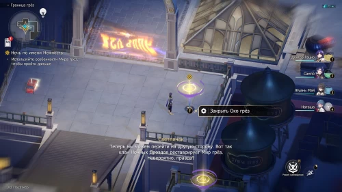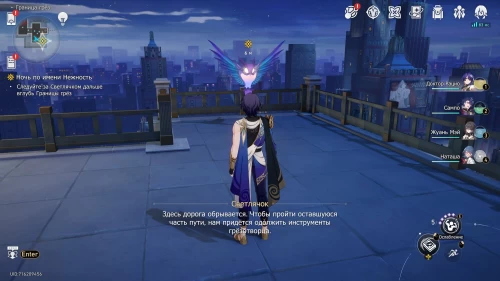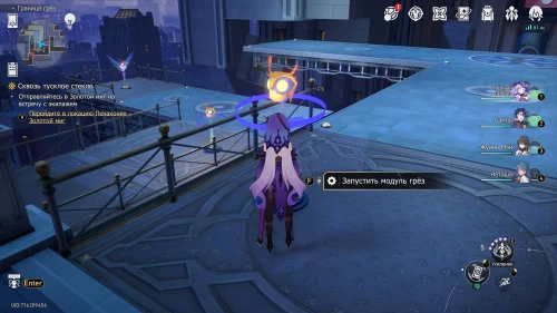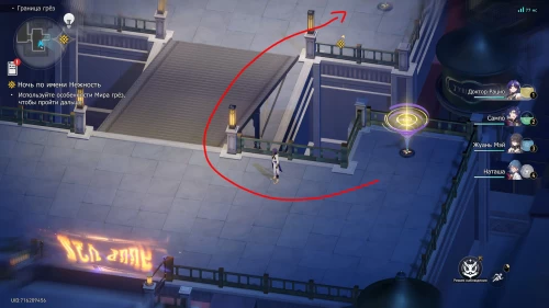 Поднявшись наверх, подойдите к девушке. Залезьте в люк и посмотрите ролик, в котором покажут беседу Искорки и Авантюрина. Вы попадете в новую локацию – Граница грез. Поднимитесь по лесенке и продолжайте бежать за Светлячком. Далее подойдите к квестовому маркеру. Охранник не пропустит вас.