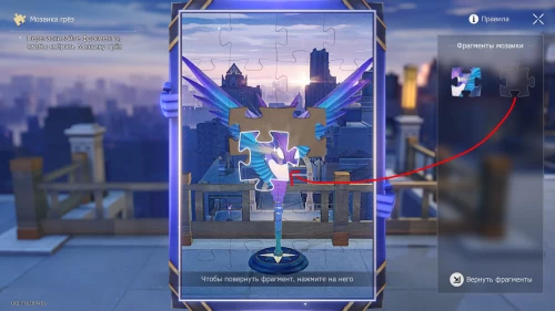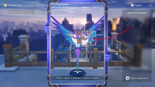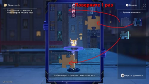 Разобравшись с врагами, подойдите к Мозаике грез, стоящей чуть впереди, и взаимодействуйте с ней. Вам нужно будет собрать ее, перетаскивая недостающие фрагменты на картину. На скриншоте ниже показано, какие части, куда нужно разместить.