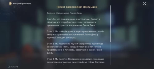 Вы получите сообщение от «Сладких снов» в канале «Фанаты Лесли Дина, объединяйтесь!» В нем рассказывается о внезапном появлении покойного Лесли Дина в Золотом миге. Из меню сообщений вы можете сразу перейти в журнал заданий и начать отслеживать миссию.