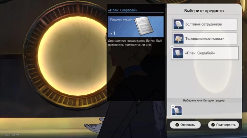 - «Серьезно, его предложение… Это откровенная чушь» – выберите улику «План: Скарабей».