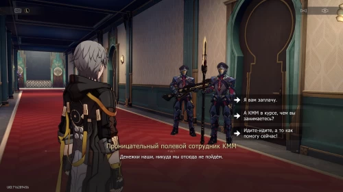 Переместитесь в «VIP-зал» отеля «Грезы» (реальность), бегите вперед, поднимитесь по лестнице и поверните вправо. Подойдите к квестовому маркеру, и вы тут же столкнетесь с сотрудниками КММ. Далее вам нужно будет заставить их уйти. Для этого можете выбрать один из следующих ответов: