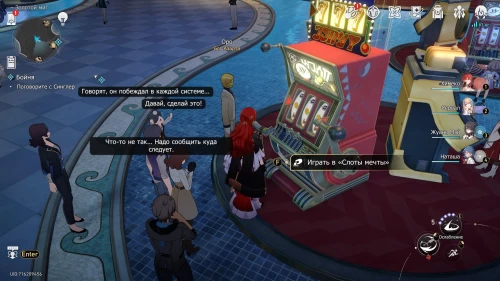 Для этого выберите ответ «Прости, но нет. Не втягивай меня в это». Бога Азарта огорчит наш ответ, но он не станет пытаться уговорить нас поменять свое решение. Теперь переместитесь в парк Айдена и подойдите к слотам мечты, возле которых собралась толпа. Послушайте беседу между эрудроидом и членами Семьи.