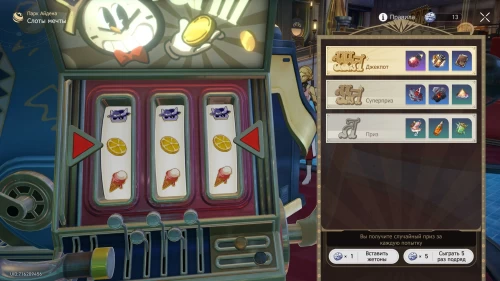 После завершения беседы подойдите к игровому автомату и сыграйте на нем один раз, потратив один жетончик. Затем выйдите из меню слот-машины и снова поболтайте с Оро. Можете выбирать любые ответы, так как они ни на что не повлияют. Бог азарта поблагодарит вас, а потом уйдет за выигрышем.