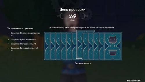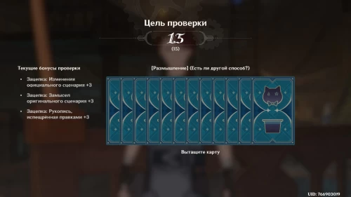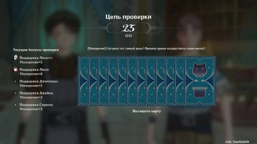 Отметим, что встречаемые вами персонажи могут давать различные бонусы к проверке. В итоге вы вполне можете постараться сделать так, чтобы вытянуть карту, соответствующую вашим ожиданиям, однако здесь все равно придется полагаться на волю случая.