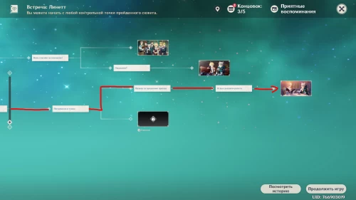 Помните, что вам вовсе необязательно начинать прохождение всей цепочки с нуля для открытия каждого финала. Вы можете без проблем перейти к любой нужной вам развилке в окошке «Встреча: Линетт». Кроме того, после выхода версии 2.2 игра теперь указывает выбранные вами ранее варианты.