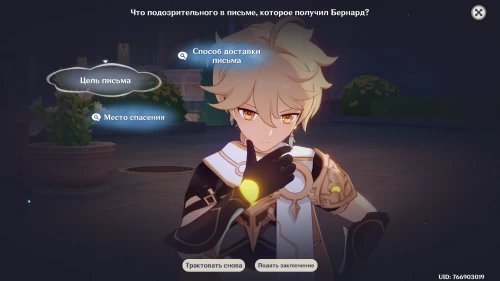 Нажмите на вариант «А что с письмом Бернарда». Далее следуйте приведенным ниже вариантам, чтобы прийти к правильному выводу:
