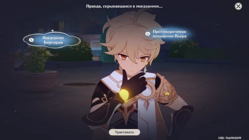 В результате у вас откроется доступ к последнему этапу дедукции под названием «Правда, скрывавшаяся в показаниях». Теперь следуйте приведенным ниже вариантам, чтобы прийти к правильному выводу:
