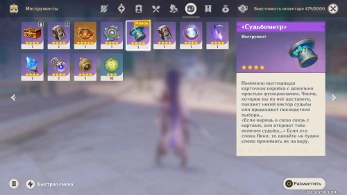Кроме того, Линетт подарит Путешественнику уникальный инструмент под названием Судьбометр. Он способен показывать случайные числа пользователю, выводя их на проекционный экран.