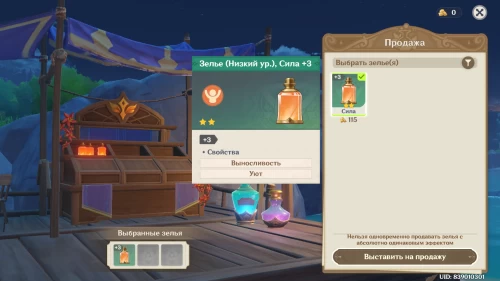После выбора флакона для зелья отнесите его к противоположному прилавку, чтобы выставить его на продажу. На данном этапе вы сможете выбрать только одно, недавно приготовленное, снадобье.