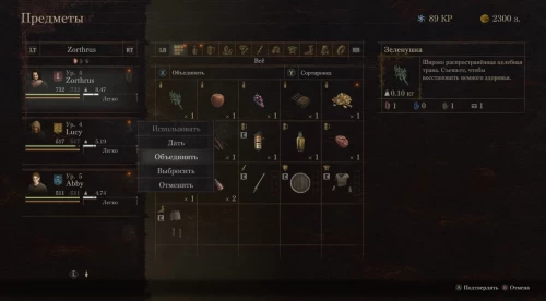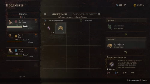 Добыв нужные предметы, откройте инвентарь, выберите зеленушку и нажмите на опцию «Объединить». Затем кликните по сухофруктам, чтобы создать фруктовую пилюлю.