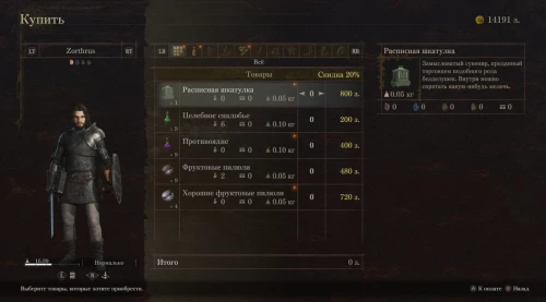 Поболтайте с ним – он поблагодарит вас за помощь и предложит 20-процентную скидку на все свои товары. Отметим, что у него можно приобрести различные лечебные предметы, включая противоядие.
