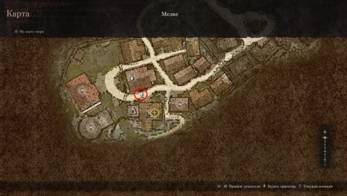 Сухофрукты же можно купить у странствующего торговца, стоящего возле дома Ульрики (на картинках ниже показано его расположение). Вам нужно будет заплатить 350 монет за штуку. Что касается зеленушки, то она в больших количествах растет в округе, поэтому вы наверняка отыщите пару штук, пока будете идти в Мелву. Утроцвет же растет рядом с Пограничным городом.