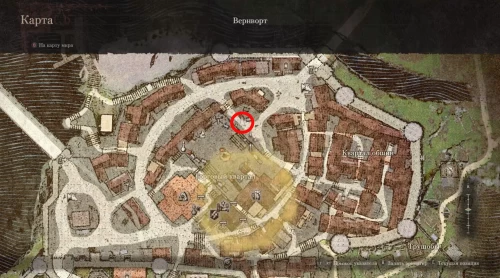 Продолжайте продвигаться по основному сюжету, пока не попадете в большой город Вернворт. Затем двигайтесь в Торговый квартал. Перед ступеньками вы встретитесь со старой знакомой. Она решит сопроводить вас к своему дедушке Ориолю, стоящему за прилавком неподалеку.