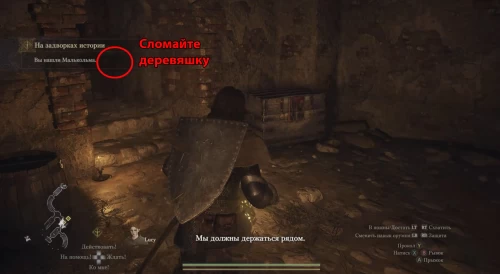 Теперь развернитесь и бегите к полуразрушенной каменной стене и котелку. Возле соломенной крыши на корочках будет сидеть второй мальчик – Харви. Он отметит, что Малькольм что-то настойчиво искал и был на пороге грандиозного открытия.