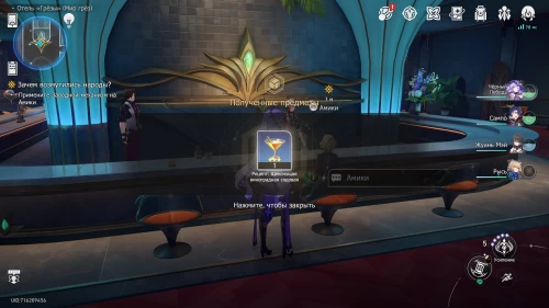 Затем поверните направо и подойдите к столику, за которым сидит Химеко. Осмотрите мерцающий объект, которым окажется знакомый вам напиток. В итоге вы получите рецепт: Классическая «Услада».