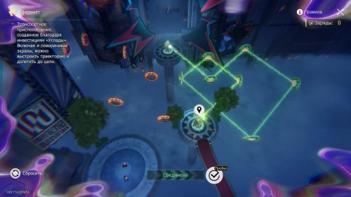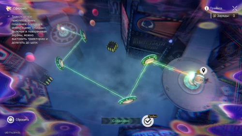 Вновь бегите за словами в воздухе, и в итоге вы сможете выбраться из лабиринта. Опять сядьте в сферомет и решите связанную с ним головоломку. Для этого активируйте линзы, показанные на скриншоте ниже, и поверните их в указанные стороны.