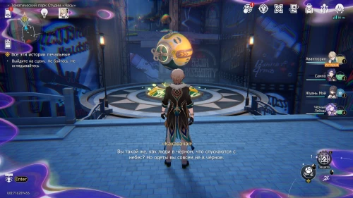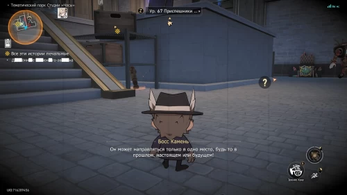 Вы снова возьмете под управление Авантюрина. Поговорив с таинственной сущностью, поднимитесь по лесенке к следующему маркеру. Затем поболтайте с ребенком, стоящим возле статуи Часика. Топ-менеджер КММ узнает в нем авгина.