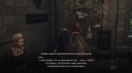 Первым делом вам нужно будет пройти другую второстепенную миссию под названием «Не оскудеет рука дающего». После того как поможете Дафнии, начните подниматься наверх по каменной лестнице, чтобы выйти из Трущоб. Наверху вас окликнет горничная по имени Диана. Поболтайте с ней и согласитесь встретиться в поместье.