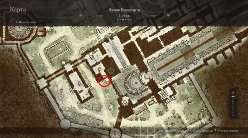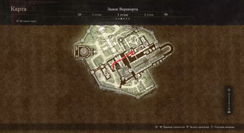 Далее вам необходимо будет попасть в Канцелярию, находящуюся в юго-западной части второго этажа. Для этого продолжайте двигаться вперед, а когда попадете в большую комнату с несколькими прохода, сверните влево. Сделайте несколько шагов и откройте дверь с правой стороны, чтобы пройти в нужное помещение.