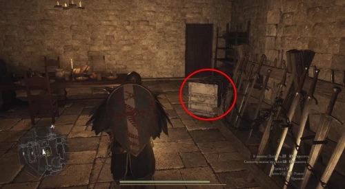 Начните следовать за девушкой. Соня приведет вас к боковому входу в замок. Если что мы показали нужное место на первых двух скриншотах ниже. Войдите в здание, и вы окажитесь в Караульном помещении. Откройте сундук справа, чтобы получить Походную броню – наденьте ее для маскировки.