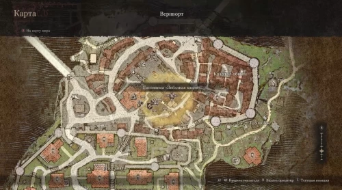 При выполнении сюжетного квеста «Трон Владыки» вы попадете в город Вернворт, где сразу же встретить с капитаном Брантом. Он захочет снова поболтать с вами в таверне, но только в ночное время. Отправляйтесь в заведение «Звездная капля», расположение которого показано на картинках ниже.