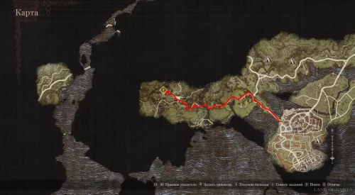 Победив чудищ, поболтайте с Францом. Он поблагодарит вас, а затем направится вместе со своими людьми к выходу. После беседы продолжайте углубляться в подземелье, двигаясь прямо. Вскоре вы попадете в просторную область. Сначала бегите вперед, а потом сверните влево и начните взбираться на склон, как показано на картинке ниже.